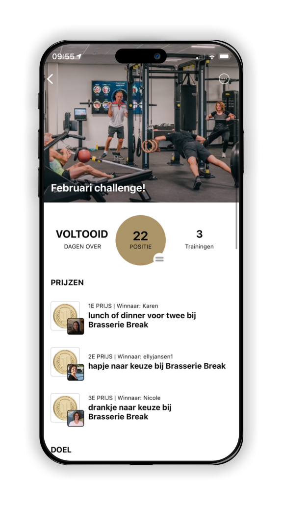 Met onze high end fitnessapparatuur van Technogym en de ondersteunende ZUITNL app, is deelnemen aan een Challenge eenvoudiger dan ooit. Aanmelden kan via de ZUITNL-app en wanneer je deze koppelt aan je smartwatch, houdt hij automatisch je voortgang bij. Wij zorgen voor de uitdaging en de beloningen; jij brengt de inzet en de energie. Zo blijft fitnessen leuk, behaal je je doelen en voorkom je blessures.